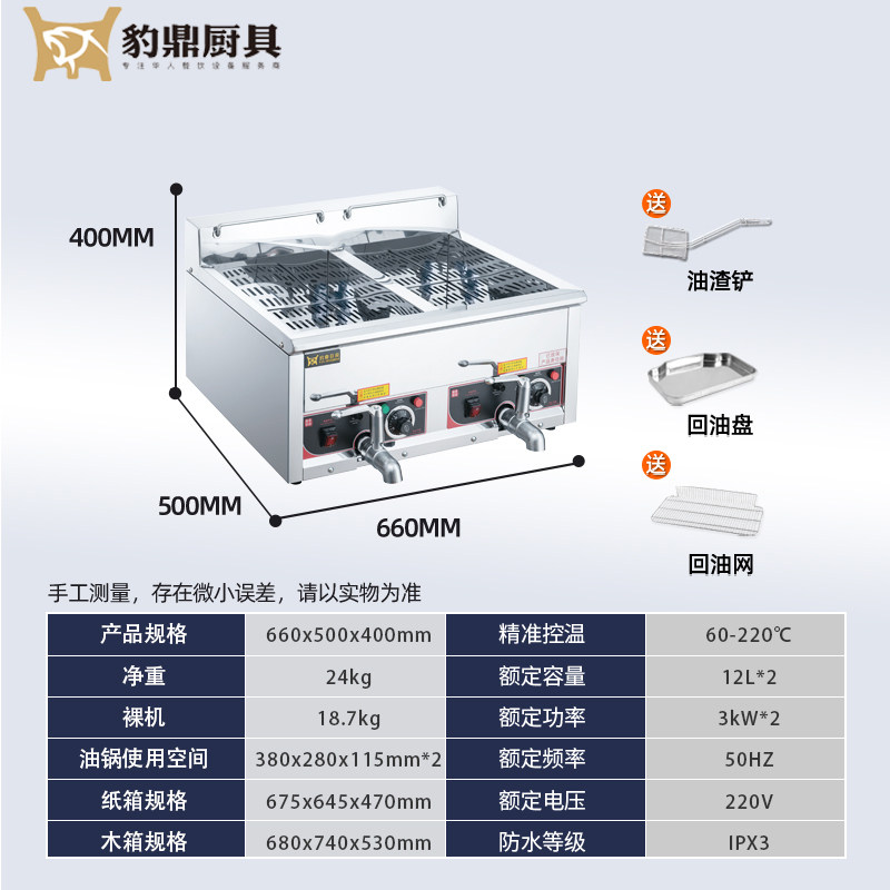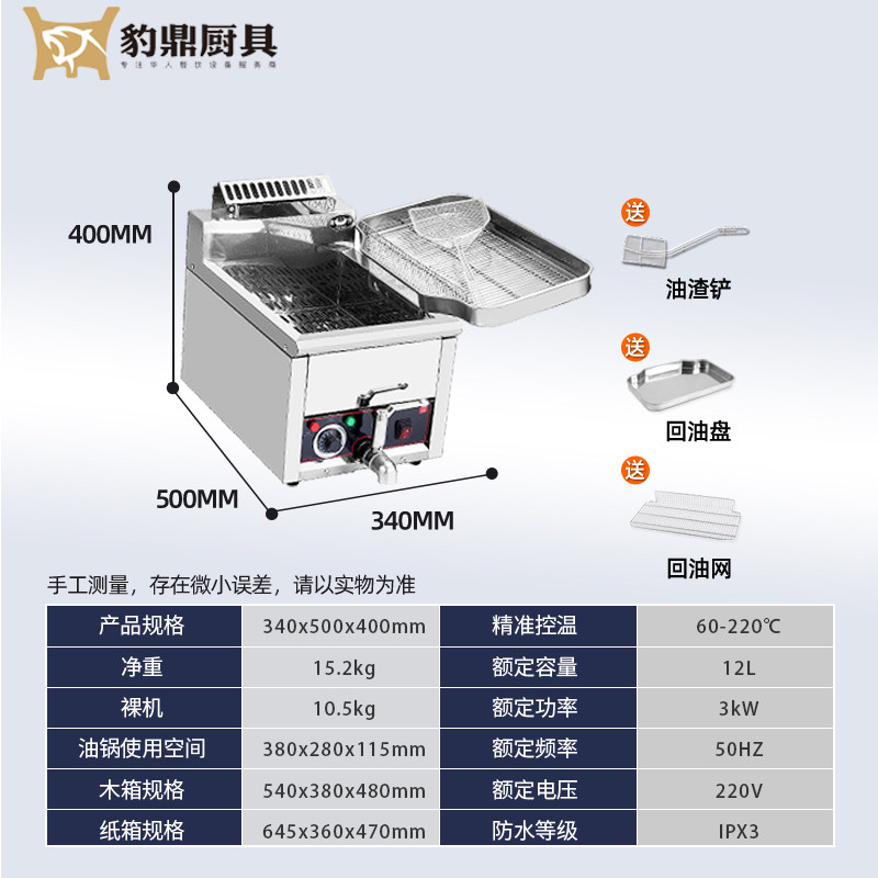 Leopard Commercial Fry Stove Single Cylinder Double Boiler Large Capacity Electric Oil Fryer thermostatic 12L fryer Fried Fried Oil Bar Chicken Steak