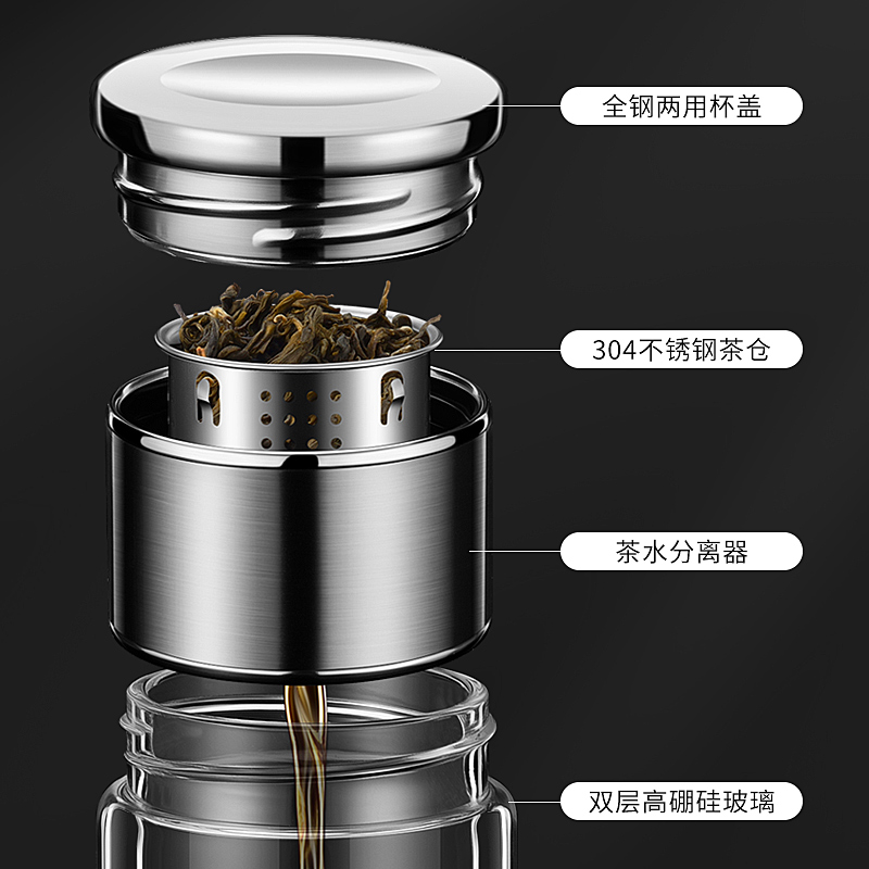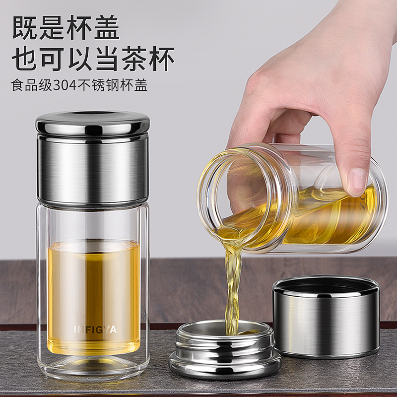 Infinitus water cup Tea water separation tea cup Men's and women's tea cup high-end glass double-layer personal transparent cup