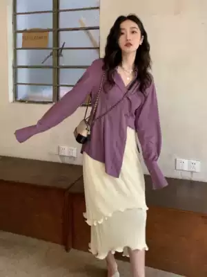 Ren Xiaoyi spring and autumn 2021 new lazy style irregular sunscreen long-sleeved shirt female design niche top