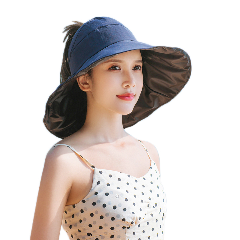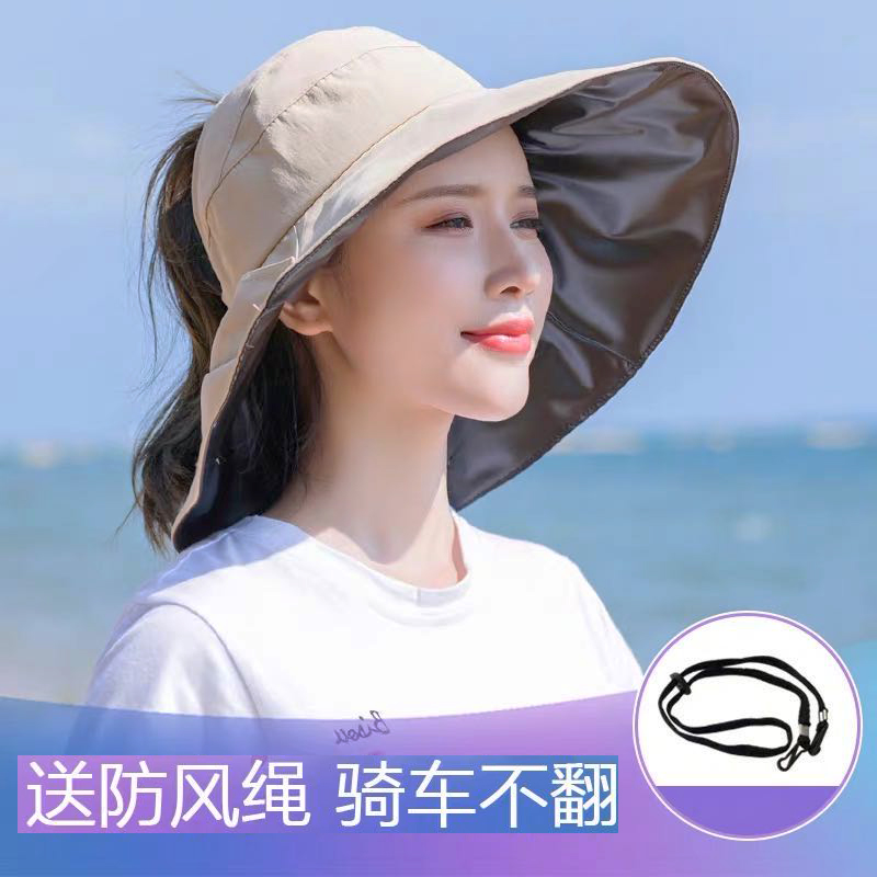 Sun hat female sun protection against UV large hat visor Bow Tie Fisherman Beach Hat Black Glue Airtop Uv Sunscreen Uv Sunscreen