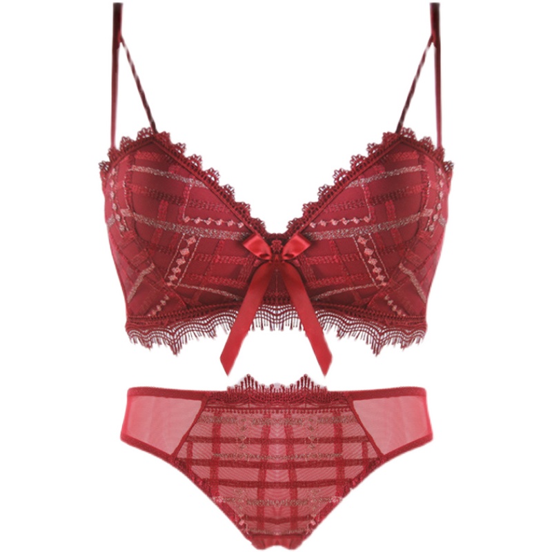 Japanese mumuain small chest gathered underwear female adjustment type closed pair of breasts sexy rimless underwear set