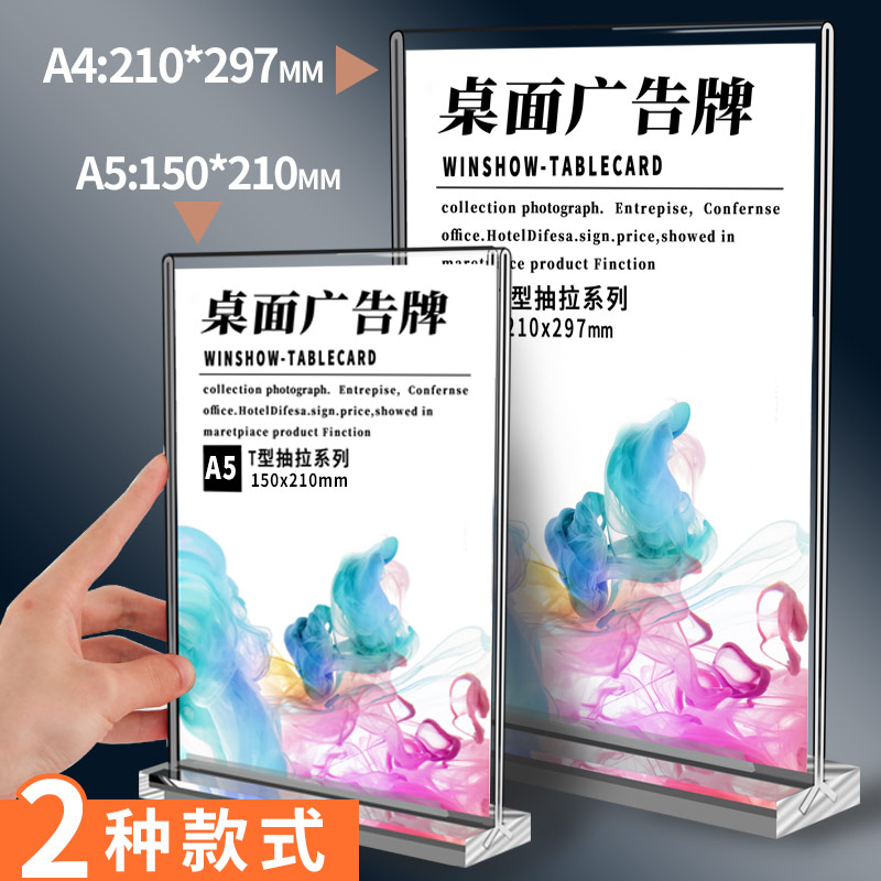 Acrylic table card table card double-sided transparent vertical card A4 pull-out strong magnetic table card display card A5 table card personality creativity A6 menu wine crystal custom menu advertising price list T-type display rack L