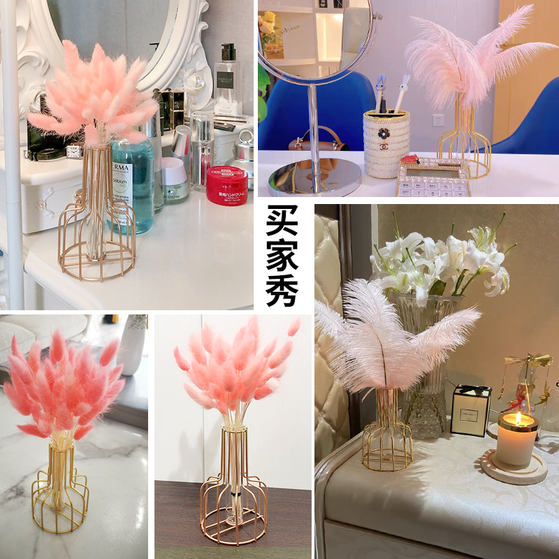 5 Short Light Pink Feather Golden Hollowed-out Vase 5 Only Short White Feather Golden Hollowed-out Vase Pink Wind Letter Gold Hollowed-out Vase Seven Heads Sunflowers Gold Hollowed-out Vase Gold Hollowed-out Vase Single Branch Short