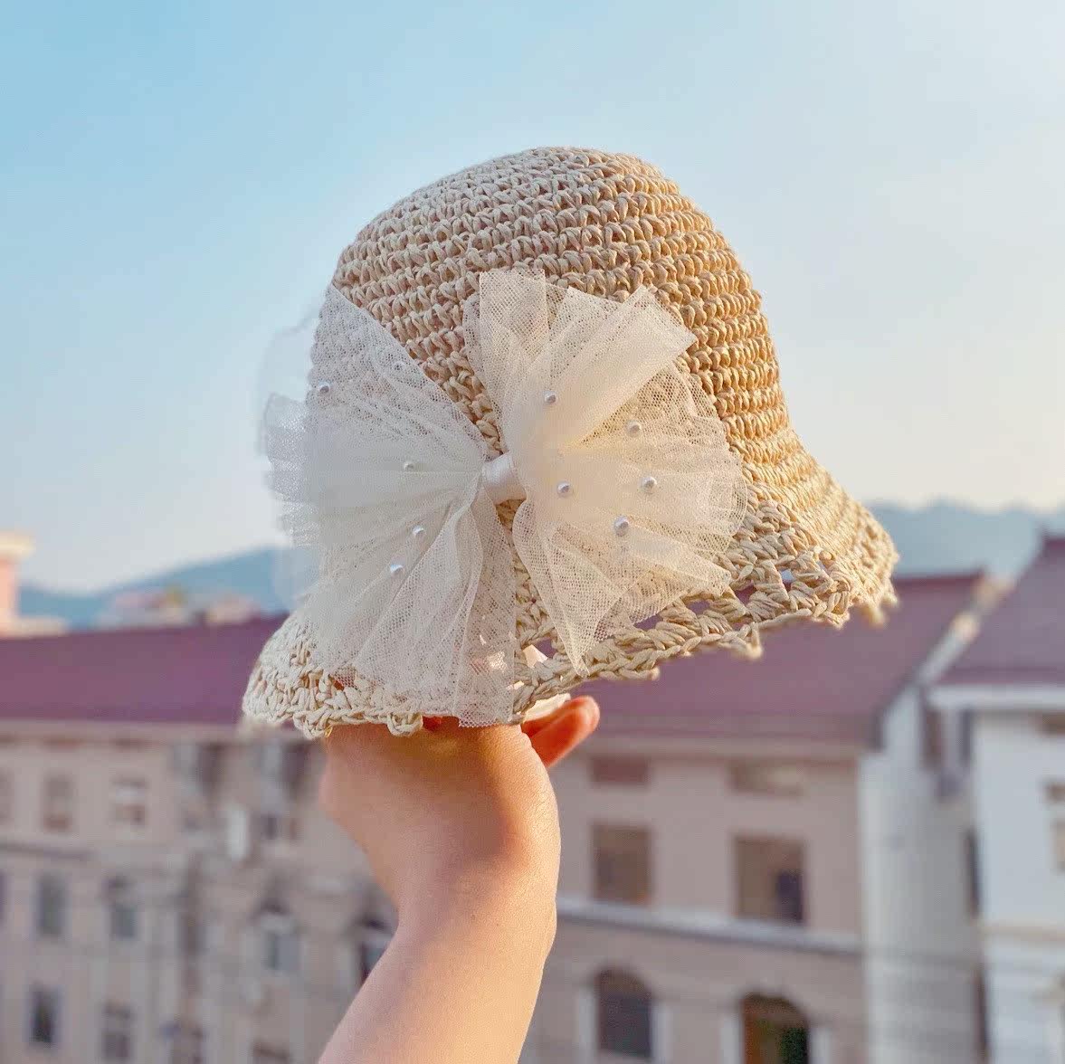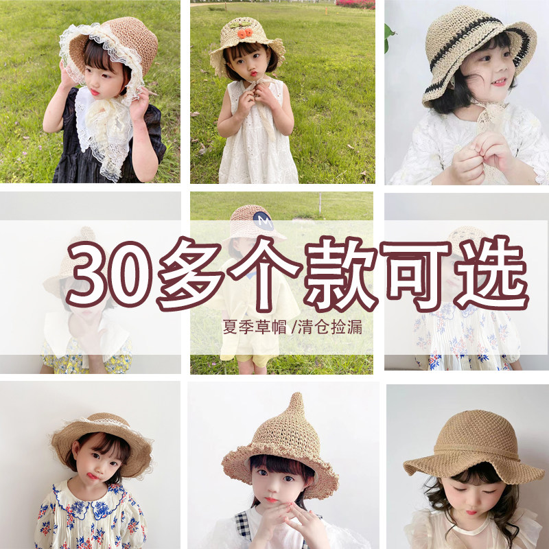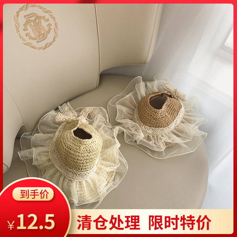 Clear and steal empty top straw hat baby hat summer sunscreen children's empty top sun hat girl big brim straw hat