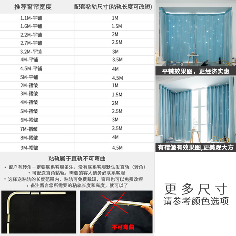 If the window has a corner, you must tell the customer service the size. It will be automatically photographed and not shipped. The height of the curtain and the length of the sticky rail can be shortened. Please contact customer service or remark and leave a message. Width 0 8* Height 1 5-
