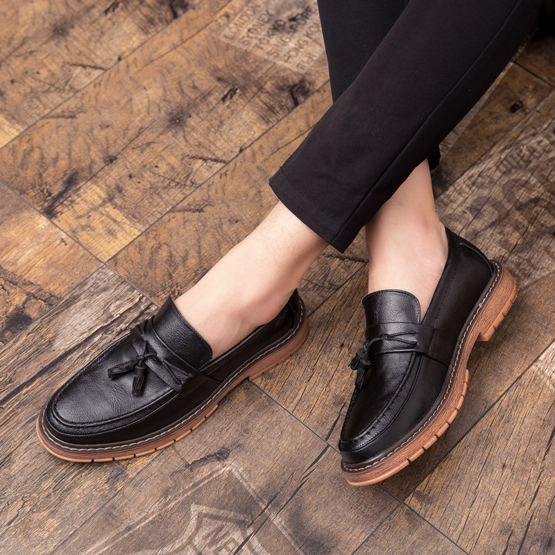 Summer soft leather Doudou shoes men's British slip-on lazy loafers business dress breathable casual leather shoes tide