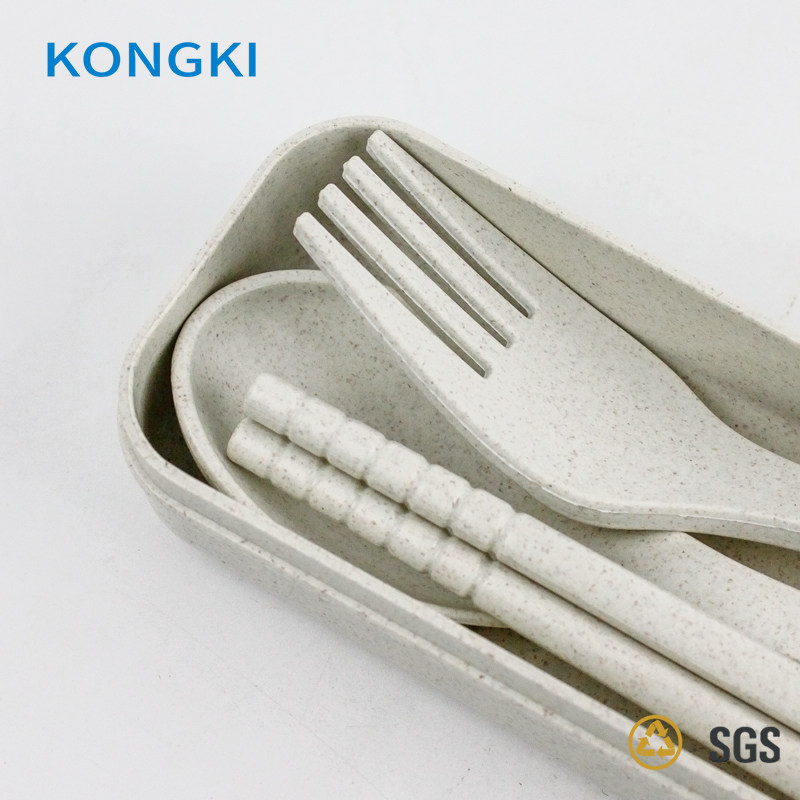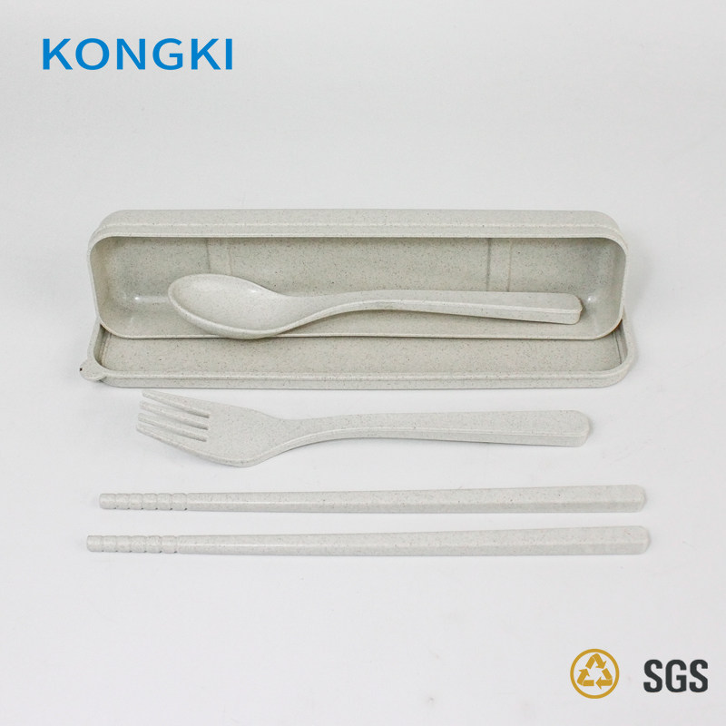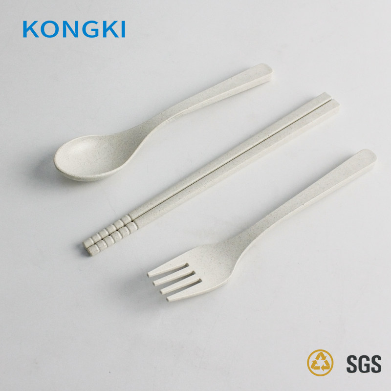 Tableware three pieces of spoon fork chopstick plastic environmentally friendly portable students white collar for work-collar travel