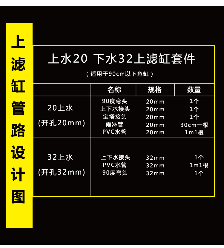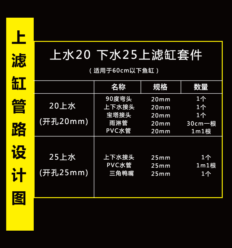 Fish tank upper and lower water pipe fittings upper filter cylinder Sheung Shui rain shower pipes Lower water drop flow pipe fittings