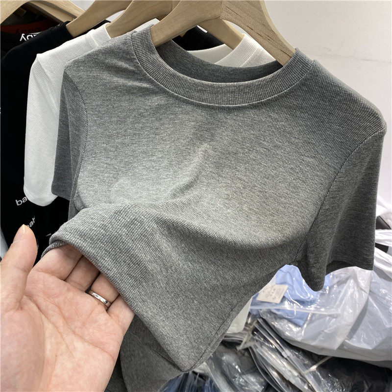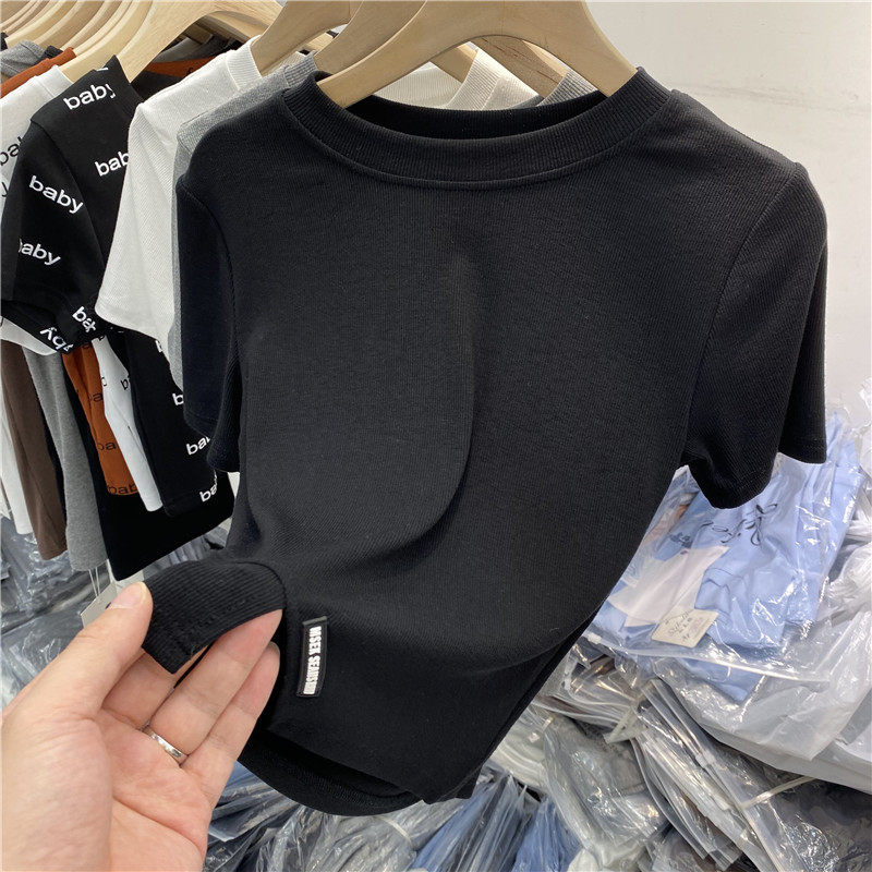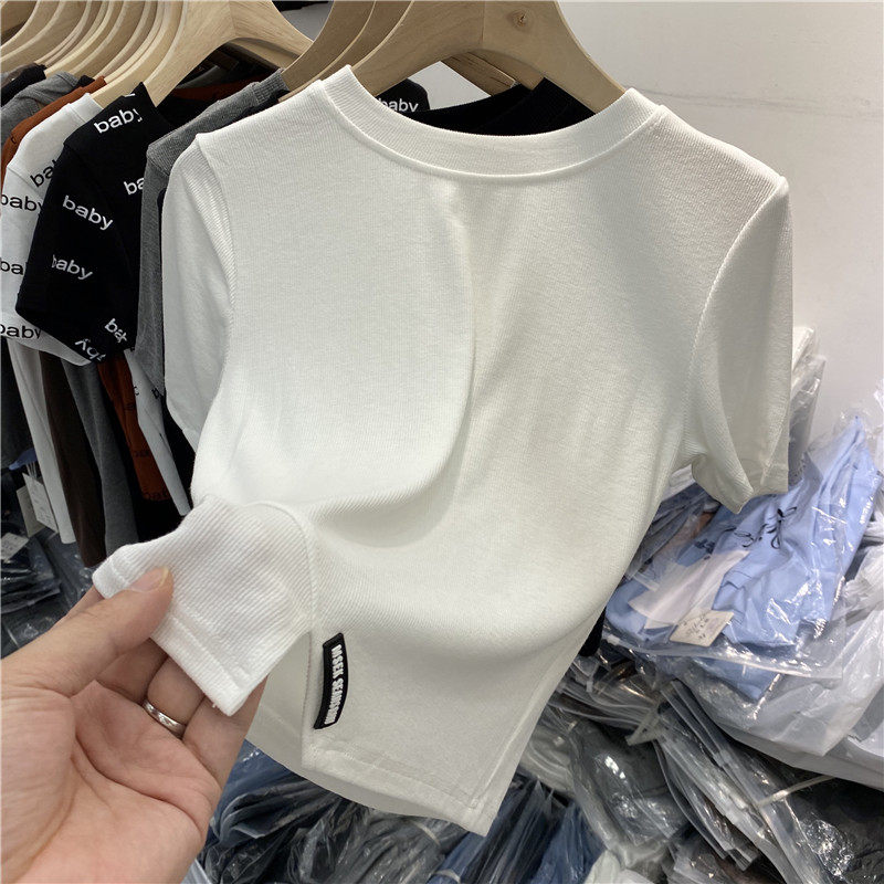 European Design Senses to Exit the Fork Short Short Waist Thread Small Shirt 2022 Summer New Short Sleeve T - shirt Cover