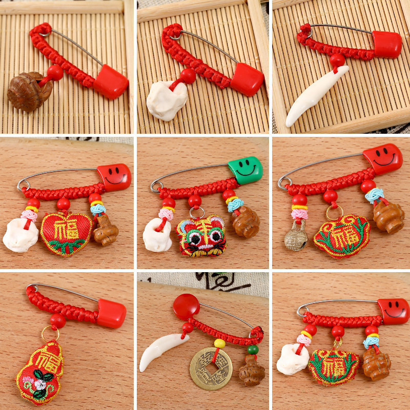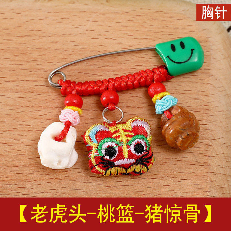 Tiger Head Brooch Tiger Head Peach Basket Pig Scared Bone Pig Scared Bone Lucky Lock Peach Basket Dog Teeth Copper Money Peach Basket Copper Bell Fu Lock Peach Basket Ping An Lock Brooch Centenary Lock Brooch