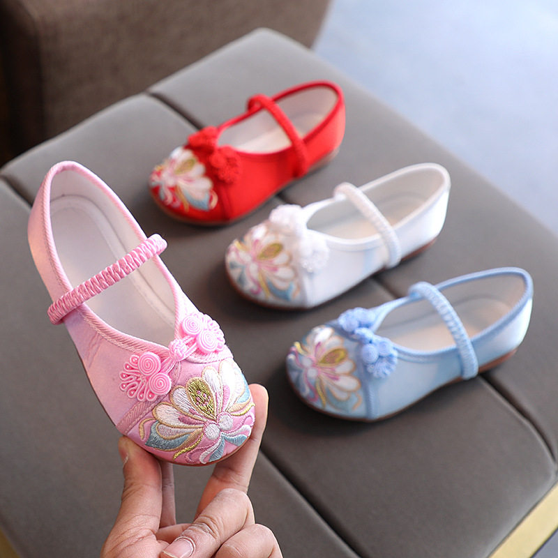 Hanfu shoes children's ancient style embroidered shoes girls Chinese style ancient costume baby dance old Beijing cloth shoes soft-soled shoes