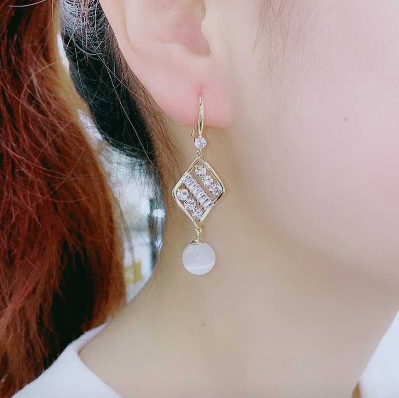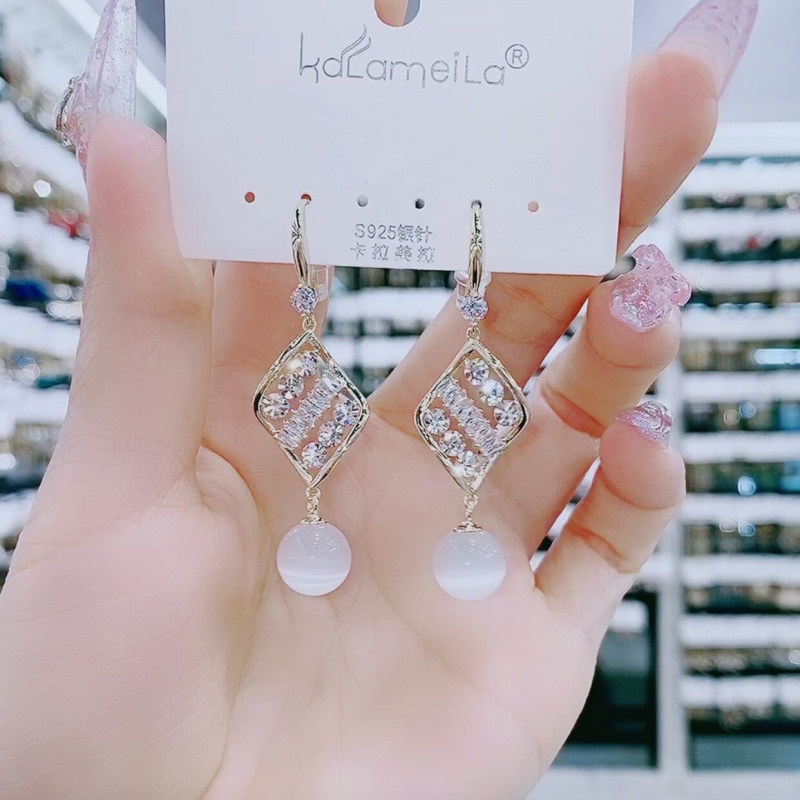 High-quality geometric diamond earrings all-match crystal earrings super flash 2021 new temperament personality opal earrings