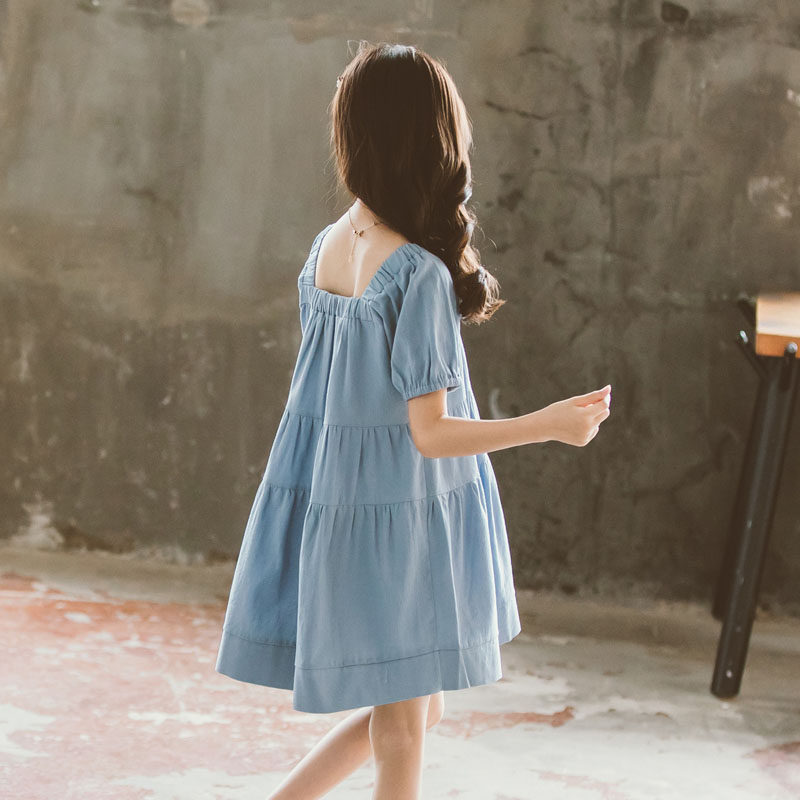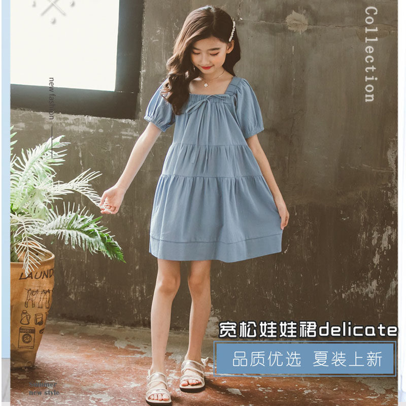next jazz girls dress summer dress 2020 new trendy short-sleeved loose mid-length doll dress princess dress