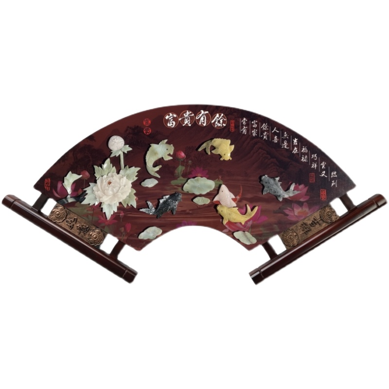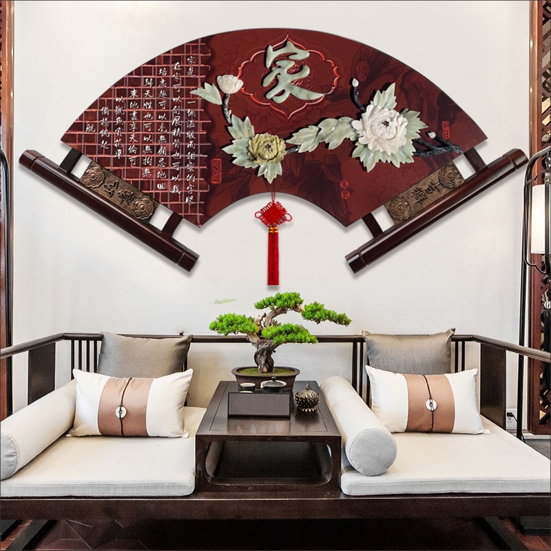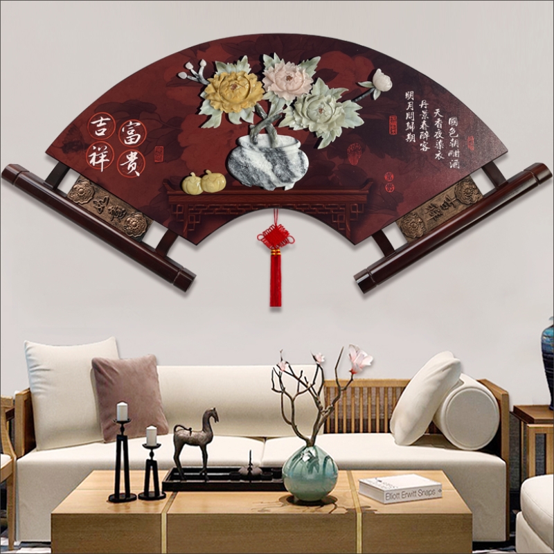 Living room decorated painting sofa background wall Chinese style fan hanging painting restaurant wall jade sculpture painting