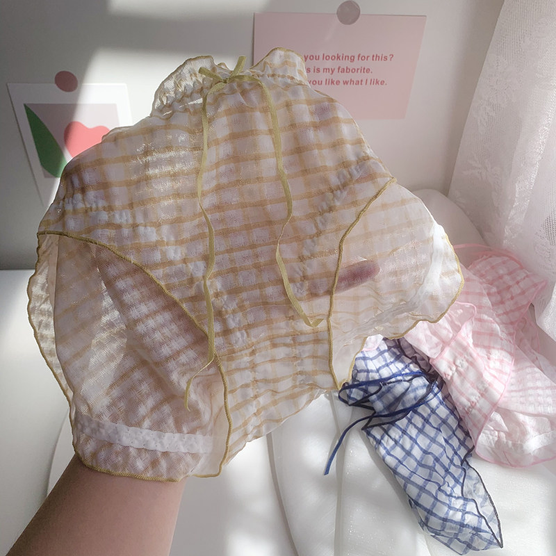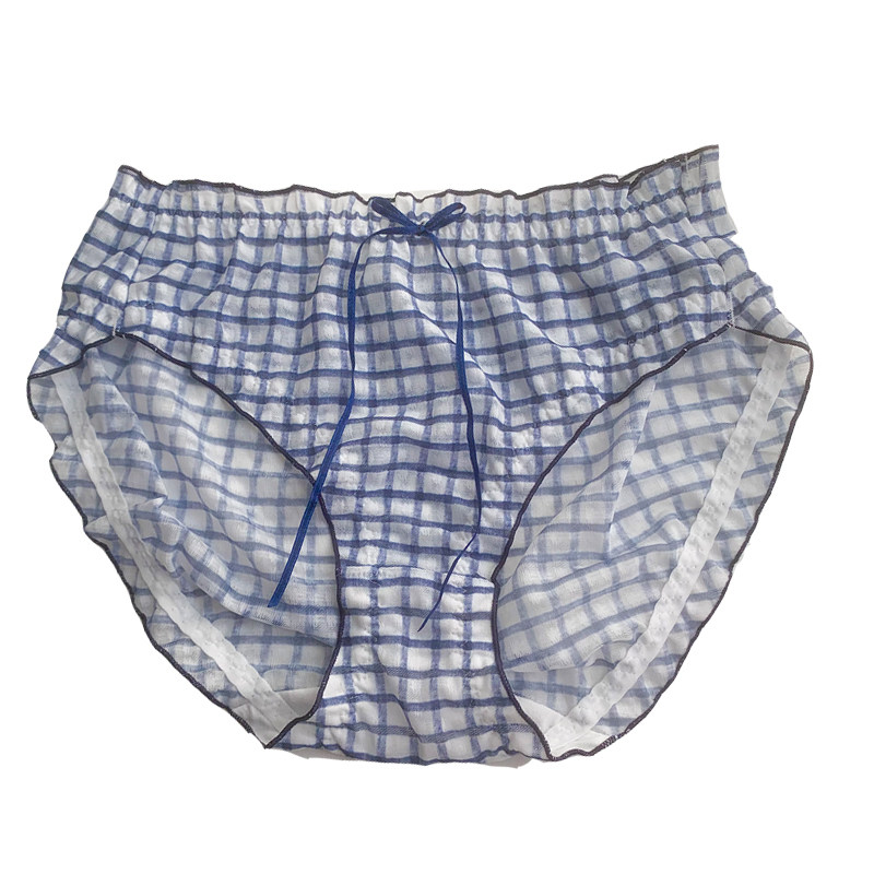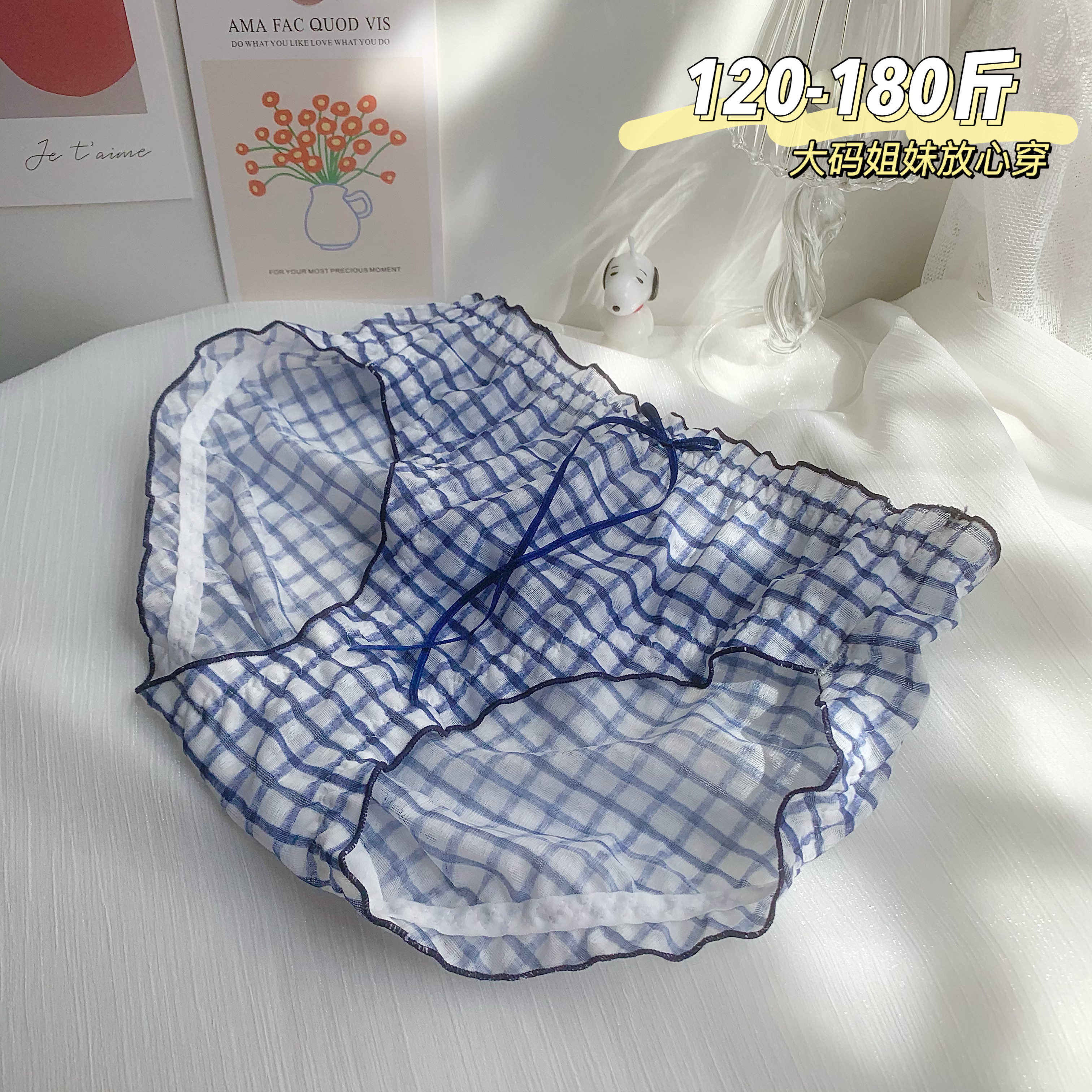 Large size buttocks, fat mm gospel ~ spring and summer Japanese sweet plaid mid-waist underwear women's pure cotton crotch briefs