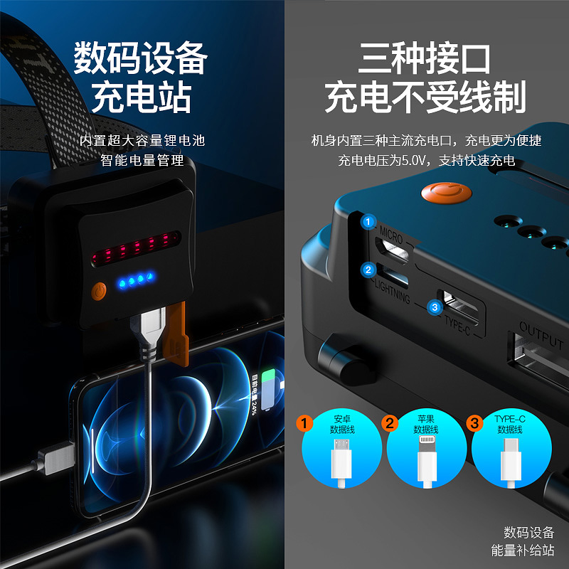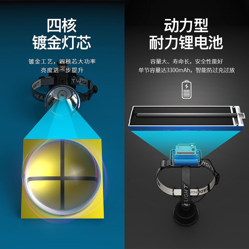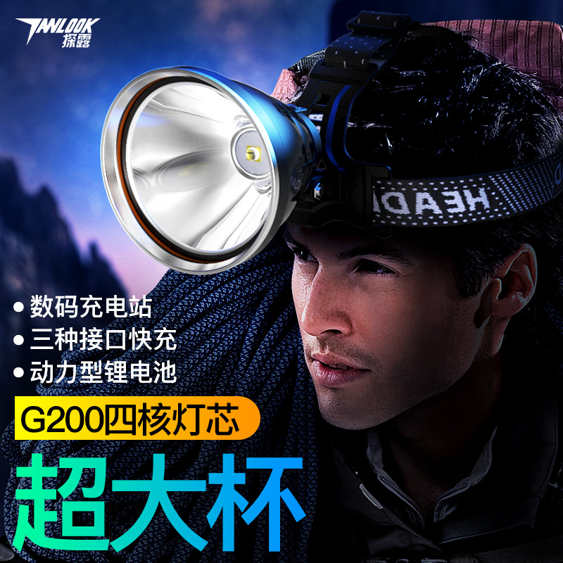 2021LED headlamp strong light charging super bright quad core P100 long-range hernia P90 head-mounted night fishing fishing mine lamp