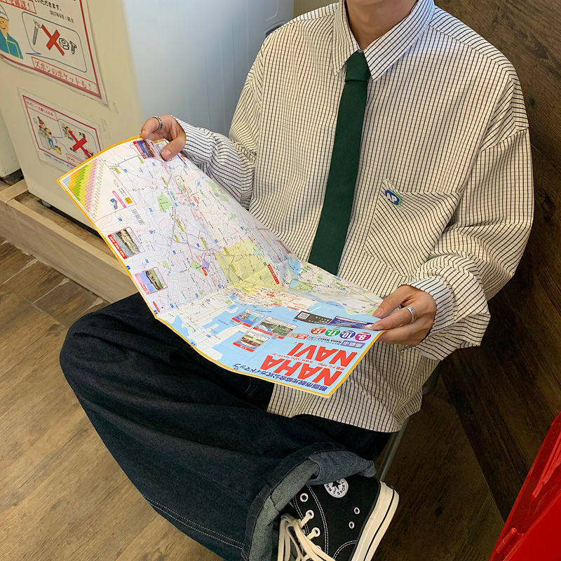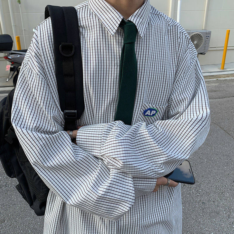 Send a tie ~ long-sleeved plaid shirt boys Korean version trendy handsome literary retro couple ins shirt jacket female