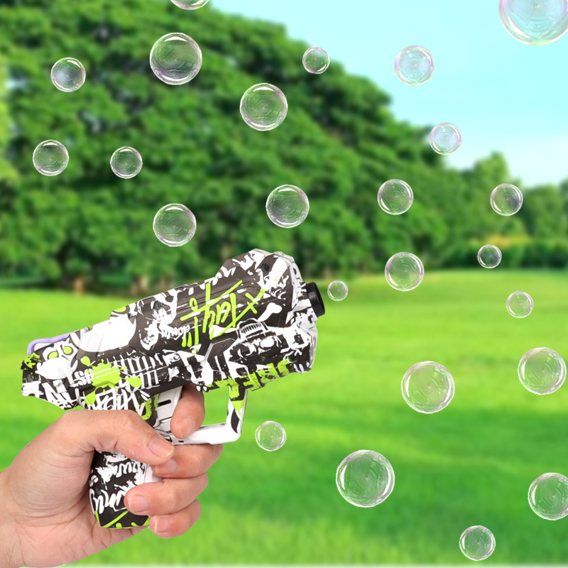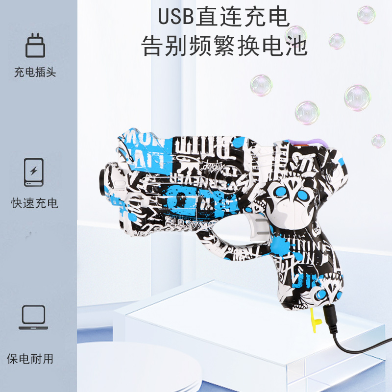 New USB charging graffiti Bubble Gun Fully Automatic Light Music Mesh Red Bubble Machine Children Blow Bubble Toys