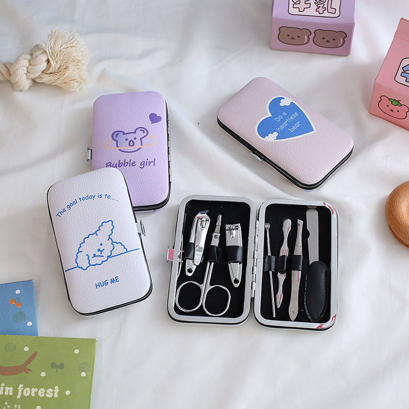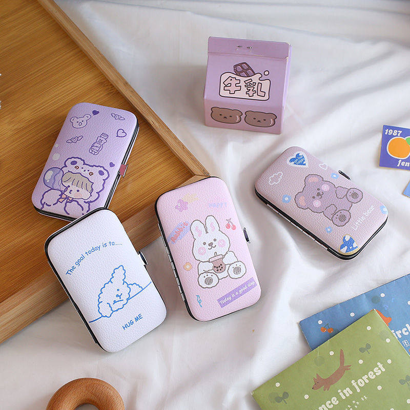 Milky white blue papa dog seven-piece set purple bear seven-piece set bubble blowing girl seven-piece milk tea rabbit seven-piece set love bear seven-piece set blue plaid two bear heads seven-piece set milk bottle dog seven-piece set fell into the well