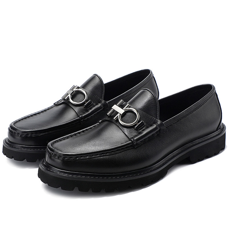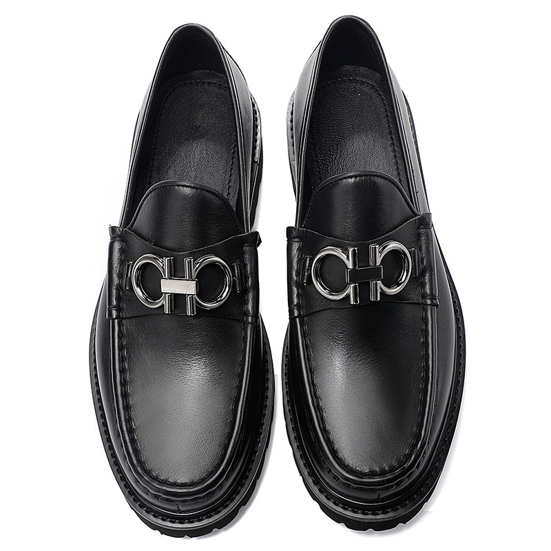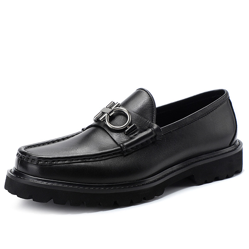 Horseshoe buckle loafers men's thick-soled leather toe caps and other cowhide slip-on light-bottomed casual leather shoes men's leather muffin bottom