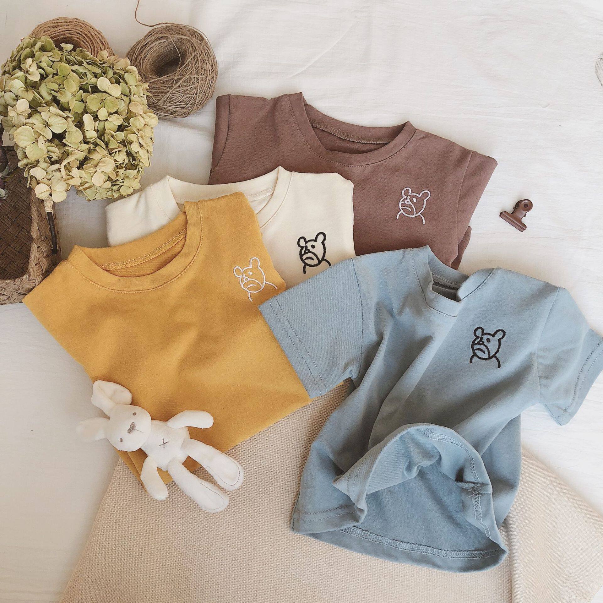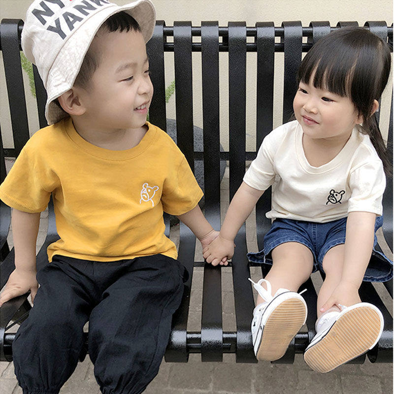 Children's wear 2021 summer new cotton short-sleeved T-shirt men and women children's embroidery half-sleeved shirt bear top
