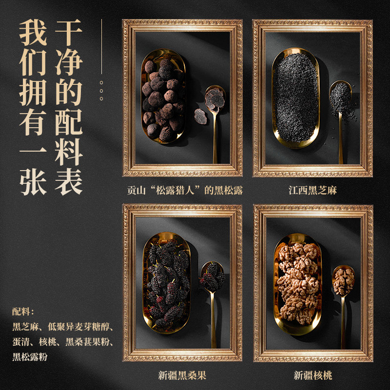 Black sesame isomaltose egg white walnut black mulberry fruit powder black truffle powder