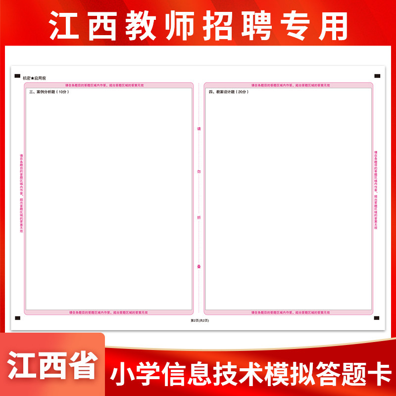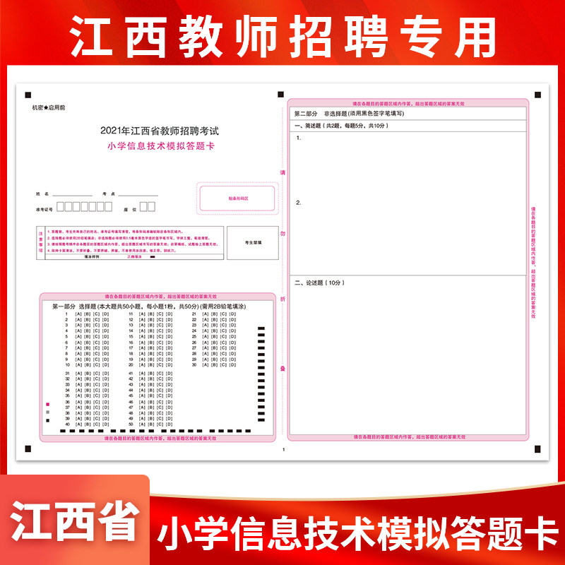 Spot 2021 Jiangxi Provincial Teacher Recruitment Examination Teaching Recruitment Primary School Information Technology Answers Card mock examination Special A3 Double sided rivaling exam paper Support customized types of answer cards