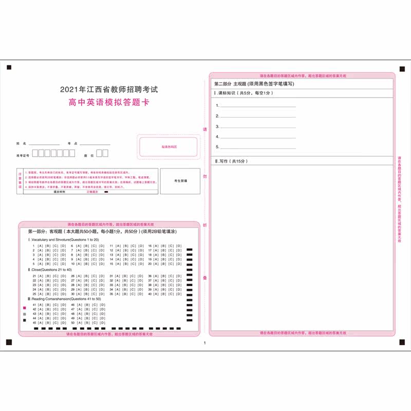 Jiangxi Provincial Teacher Recruitment Examination High Middle English Simulation Answers Card A3 Double sided compared to exam paper Support customized types of answer cards 120 gr Double adhesive paper