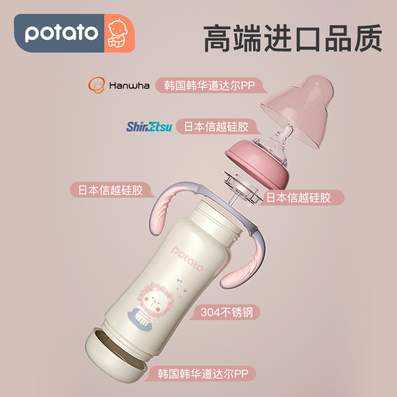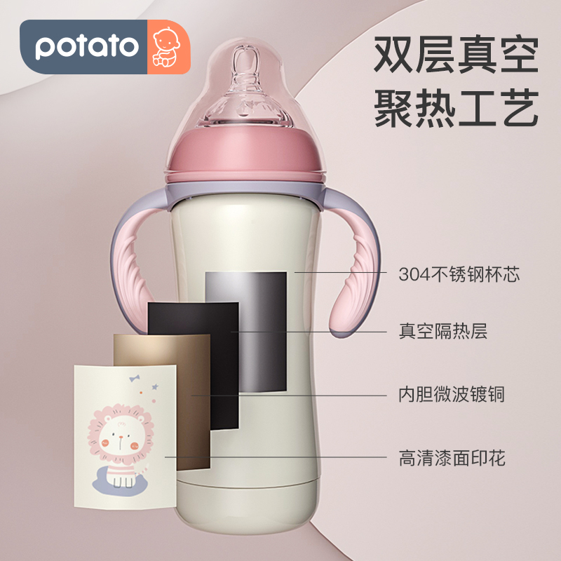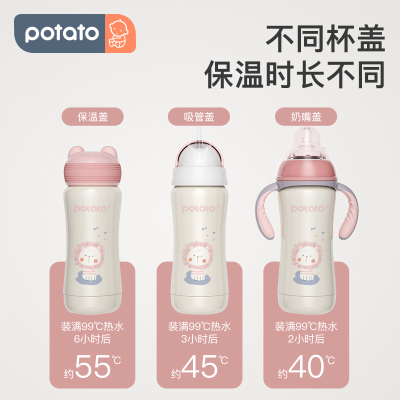 Small Potatoes Baby Insulation Milk Bottle Infant Child Insulation Cup Stainless Steel Milk Pot Straw Baby Cup Three