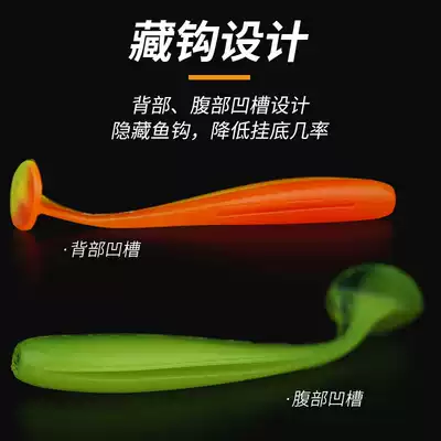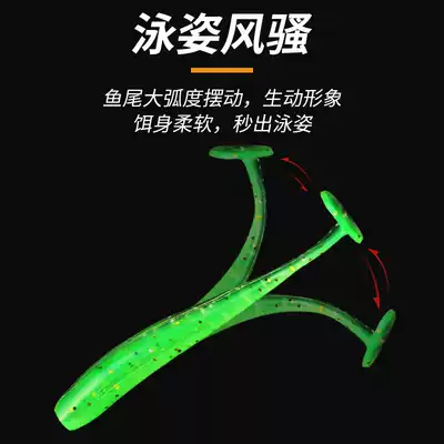 Luya soft bait T-tail Freshwater long-throw soft worm Luya bait Mandarin fish perch bait Micro bait Crank hook set
