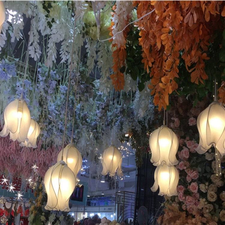 5-head sector line Suzulan flower hanging string warm light 10 head sector line Suzulan flower suspension string warm light 6 head cloth art drop (3 large 3 small) white light 6-head cloth art drop (3 large 3 small) warm light