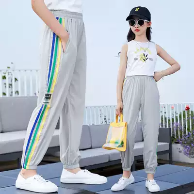 Girls anti-mosquito pants summer thin model 2021 new child Ice Silk sports pants loose summer children's pants