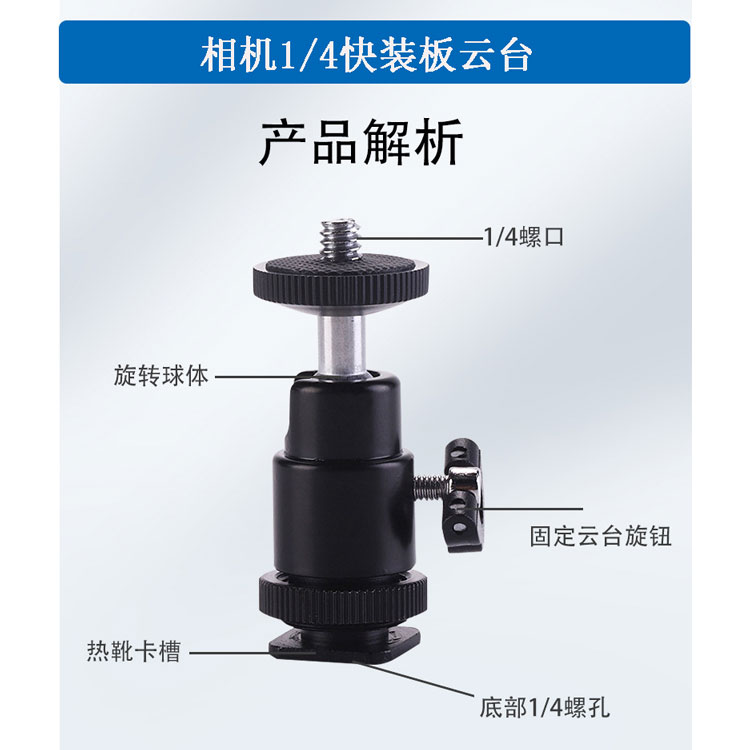 360-degree rotating metal small gimbal single-eye camera mobile phone tripod bracket quick-loading plate spherical mini ball table