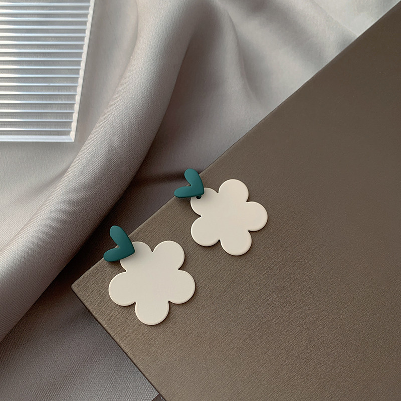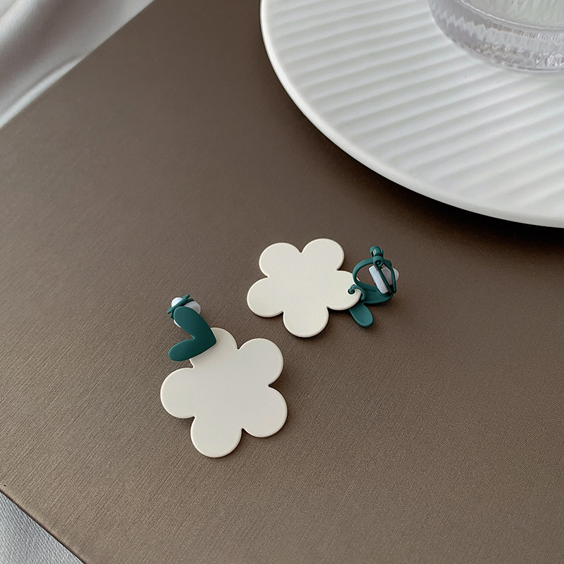 Cheese Matcha Girl Sweet Contrast Color Love Flower Earrings Petals Lovely Temperament Ear Needles Without Ear Holes Ear Clips Female