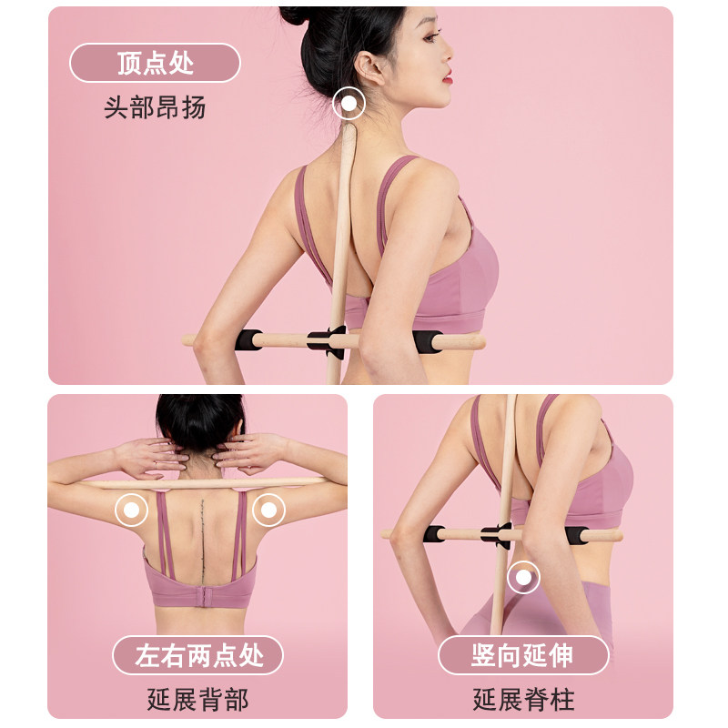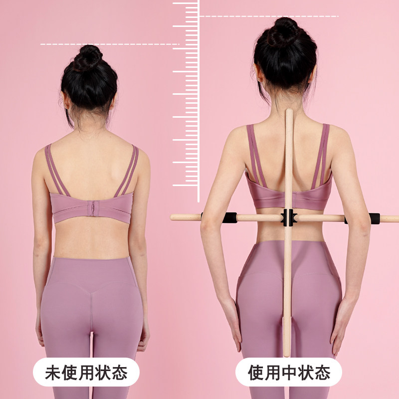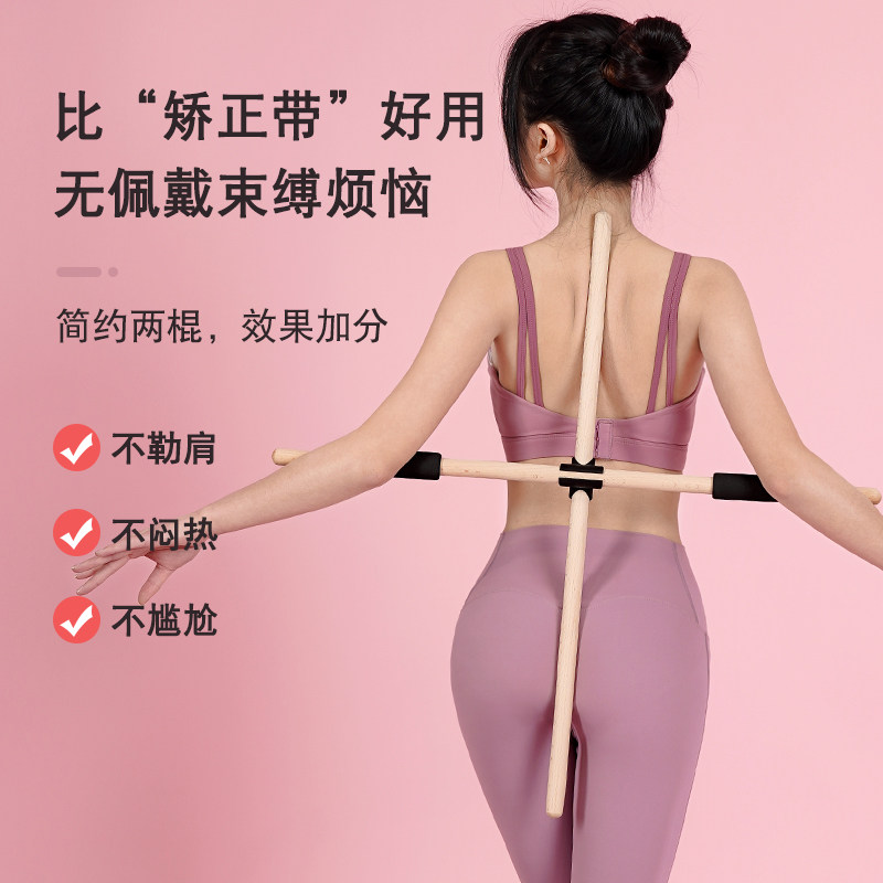 Body wooden stick Open shoulder open back artifact Standing posture correction hunchback correction cross Yoga stick Training stick Wooden equipment