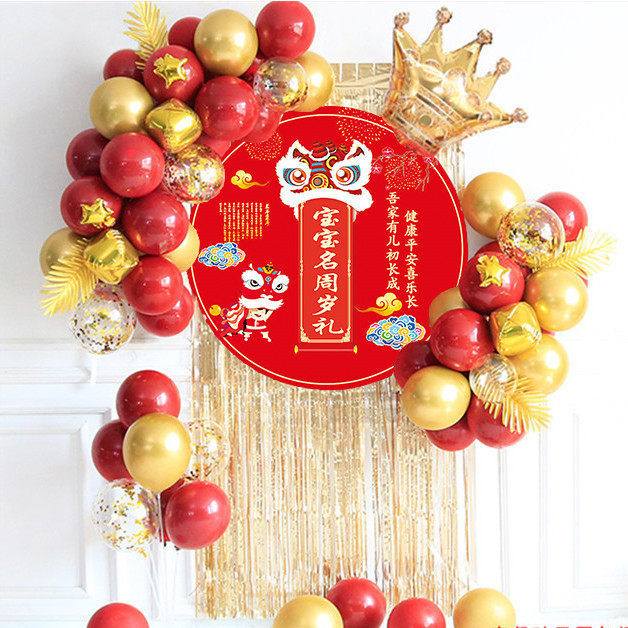 Hundreds Day Dinner Birthday Decoration Scene Placement Baby Grab Week Gift Background Wall Children Balloon Package Girl Boy-Taobao