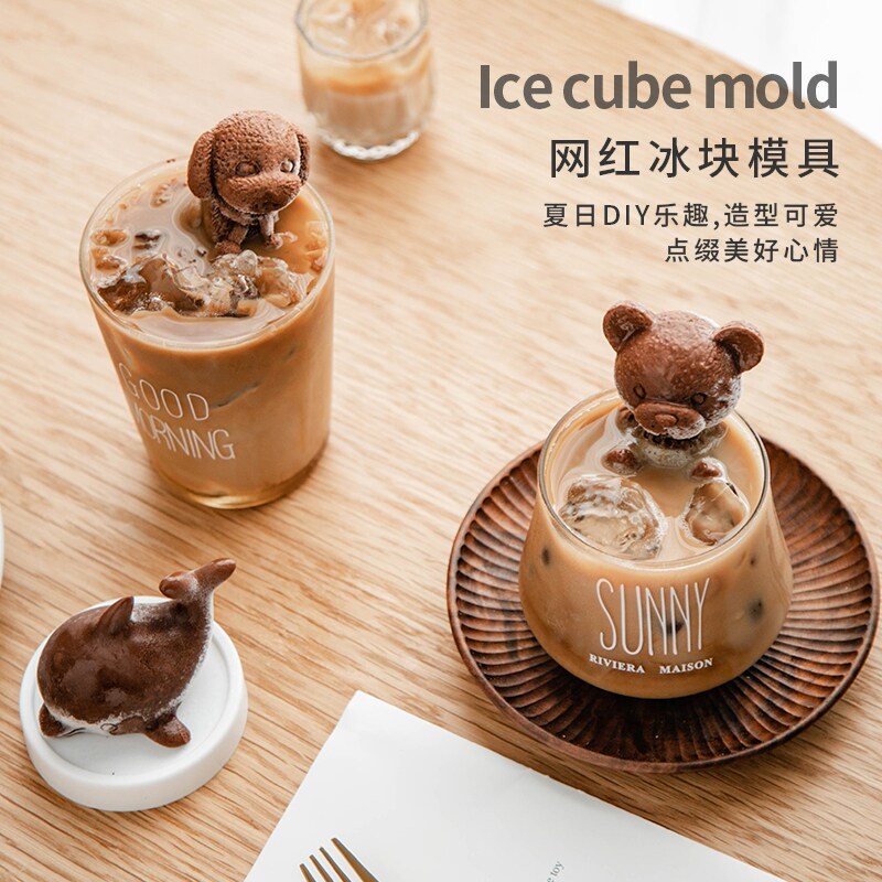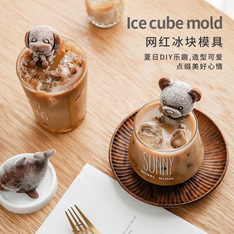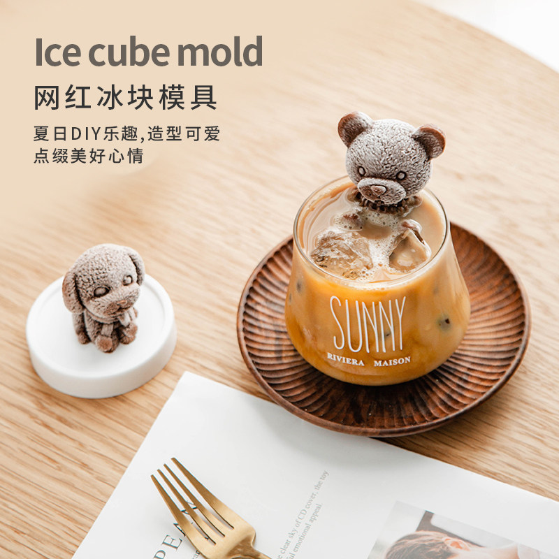 Net Red Little Bear Ice Ball Mold Silicone Ice Bear Sharper Molars Rose Mold Frozen Coffee Milk Tea Chocolate Ice Sculpture