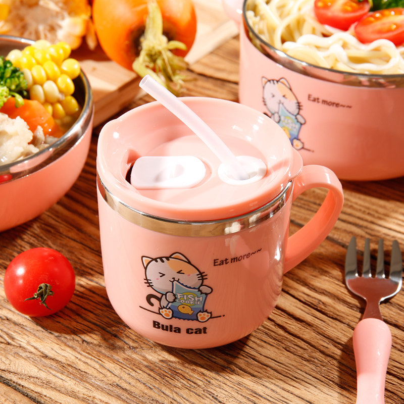 Small cat powder 270ml straw cup (304 stainless steel) panda green 270m straw cup (304 stainless steel) polar bear blue 270m straw cup (304 stainless steel) small
