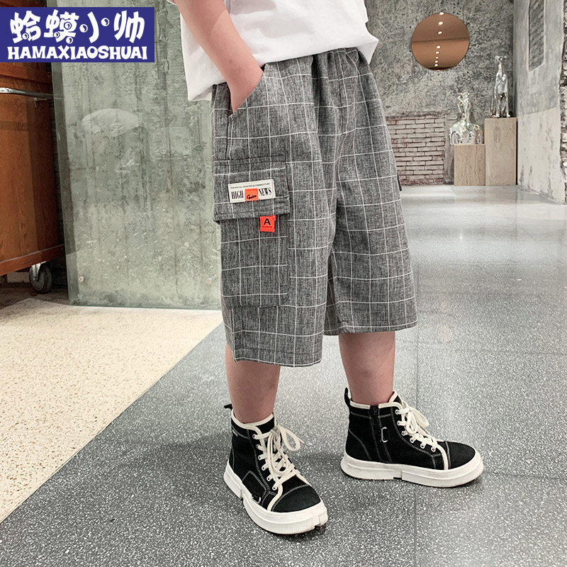 Boys shorts summer dress 2022 new Western style middle-aged children's overalls Korean version handsome boy plaid shorts tide
