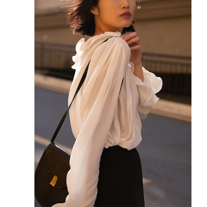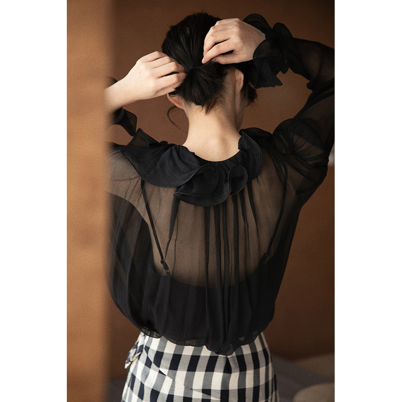Richter Fairy Beauty Cicadas 100% mulberry silk blouse women's summer clouds Hooded Sweatshirt Clairvoyant Blouse female spring x L