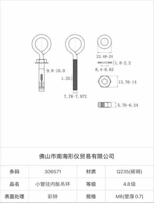 The lamp hook swelled in the ring of the lamp's eye with a hook hook - hook - lap eye pulled the M6 screw rod screw