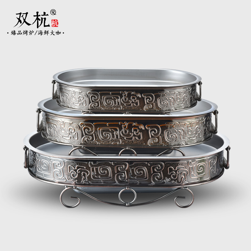 Seafood big coffee plate commercial 304 stainless steel thickened non-stick plate square round pot platter grilled fish lobster stove