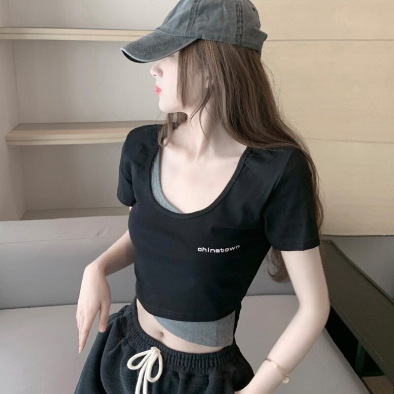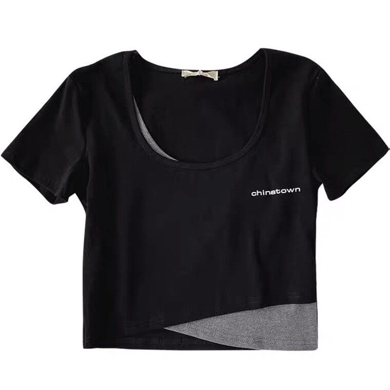 celine pianna fake two short sleeves T-shirt female summer Han version swarm with a small crowdsourced jacket