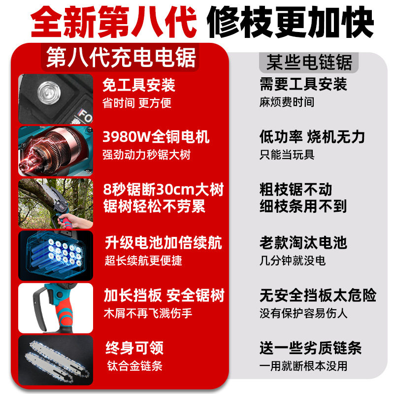 One-handed lithium electric saw logging saw mini charging portable home electric hand saw outdoor wireless portable electric chainsaw-Taobao