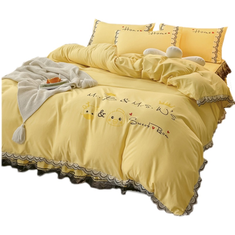 Net red hot Korean version lace lace bed skirt four-piece set grinding Princess wind non-slip naked sleeping quilt cover low price clearance