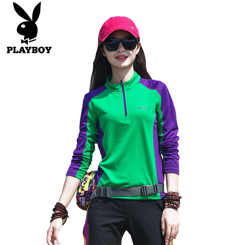 Playboy outdoor quick-drying clothes ladies long-sleeved tops 2022 spring and summer color-blocking breathable moisture-wicking T-shirts