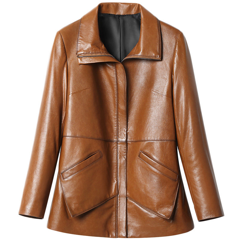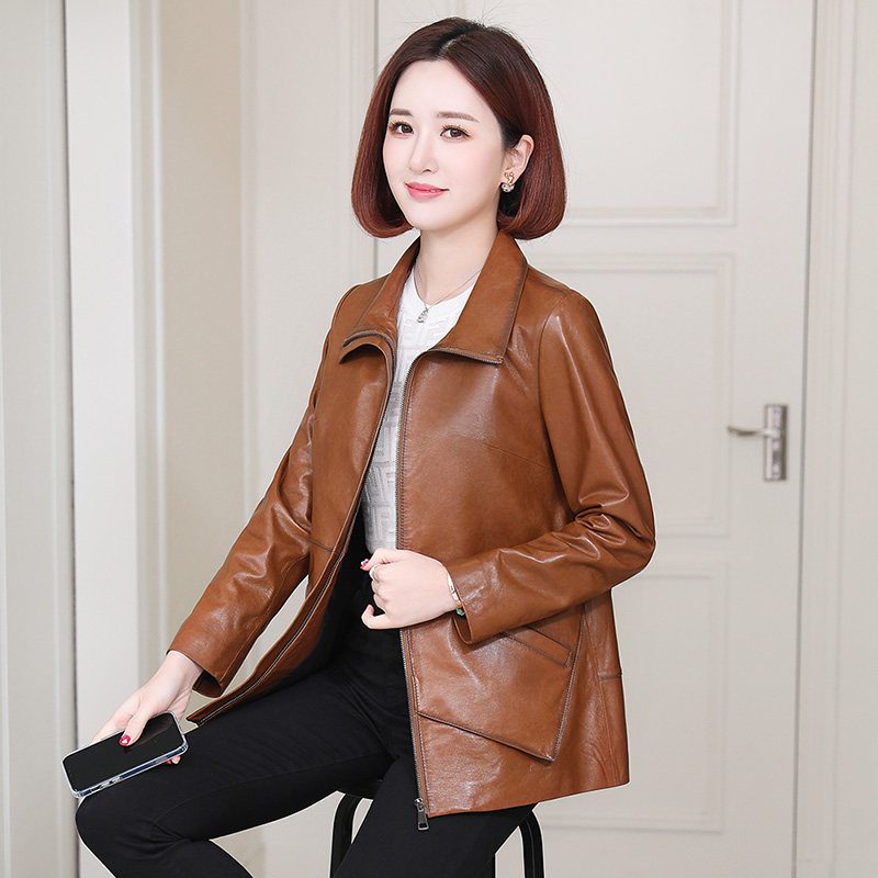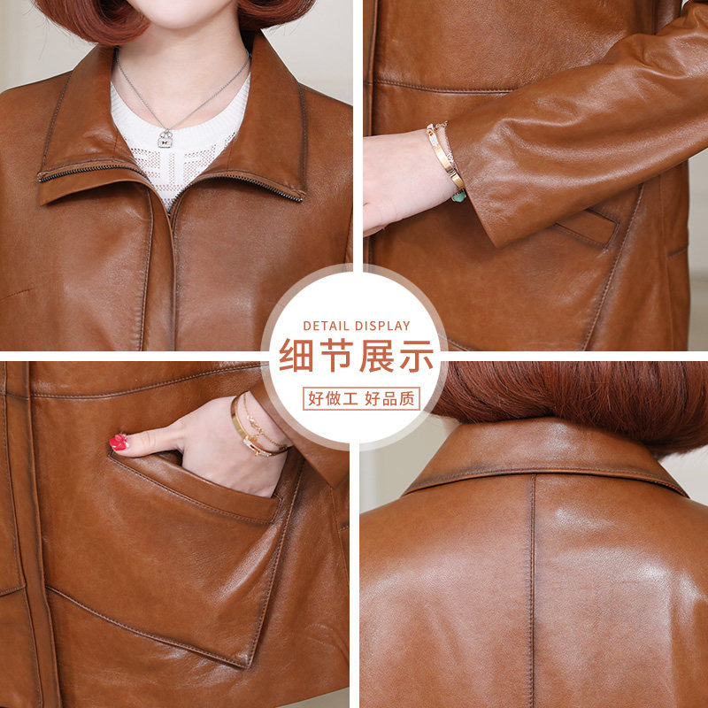 2022 new spring size Size Relaxation Henning Leather Clothing Lady Short leather jacket Mom middle-aged sheep leather Outer cover