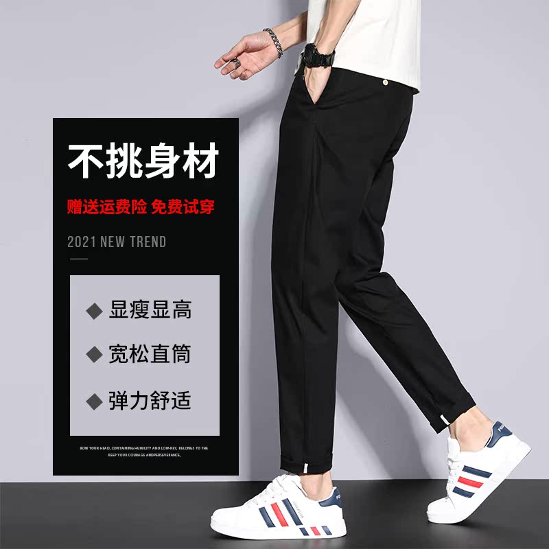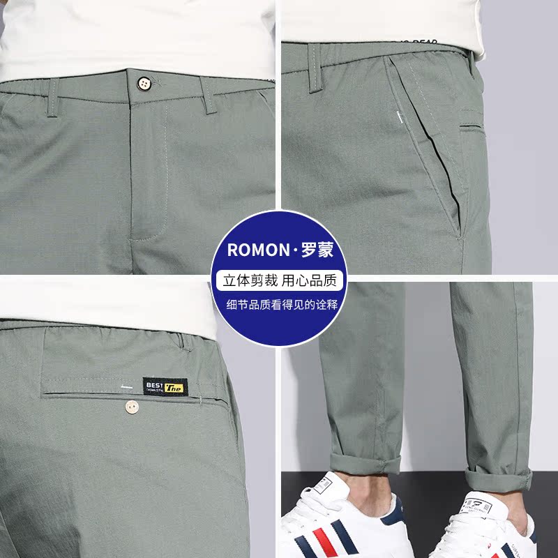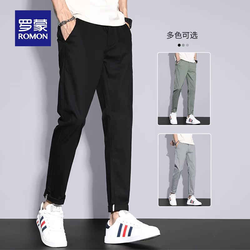 Romon casual pants men's 2021 summer new Korean fashion youth trend loose long pants men's thin