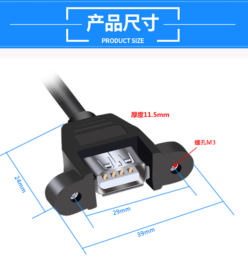 USB2 0 with ear extension cable male to female to female with screw hole fixing with earrings main shell bezel cable