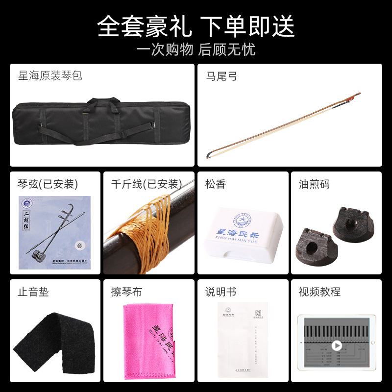 Starsea Erhu Musical Instrument 8722 8723 Red Iron Wood Bean Log Polished Hexagonal Beginnings Play Erhu
